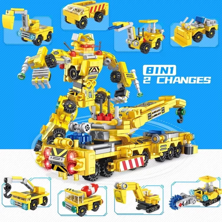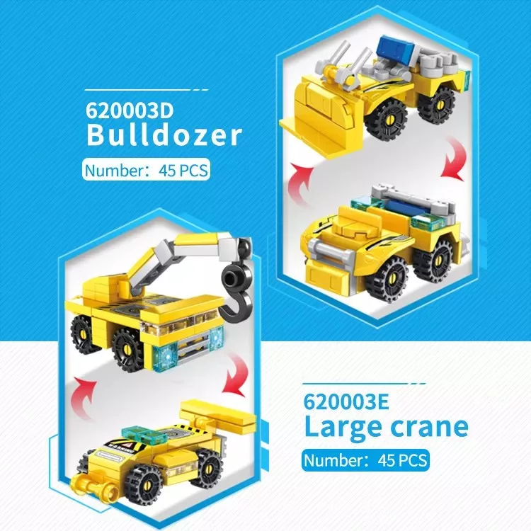Válaszd ki, építsd, és játssz vele. Építs vele 8 féle különböző járművet.Ha mind a 8 forma megvan, abból egy nagy robot szerelhető össze.