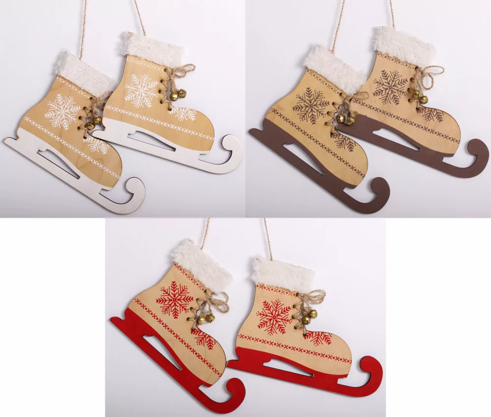 Fa Bakancs Ajtódísz 3 Féle S/2 16Cm Bézs-Barna-Piros