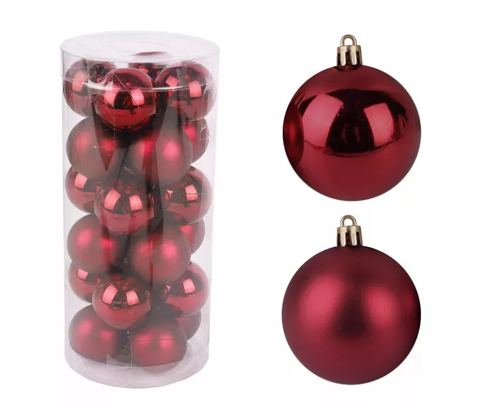 Karácsonyi műanyag gömb burgundi, 2cm, 24db/csomag