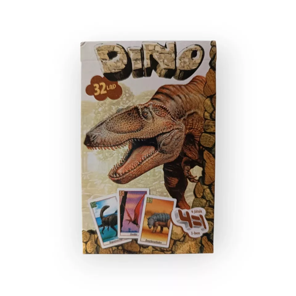 Dínók 4 az 1-ben kártyajáték. Kvartet, Fekete Péter, memória vagy reflex. Ismered a képeken szereplő dínókat? Lássuk ki az ügyesebb.