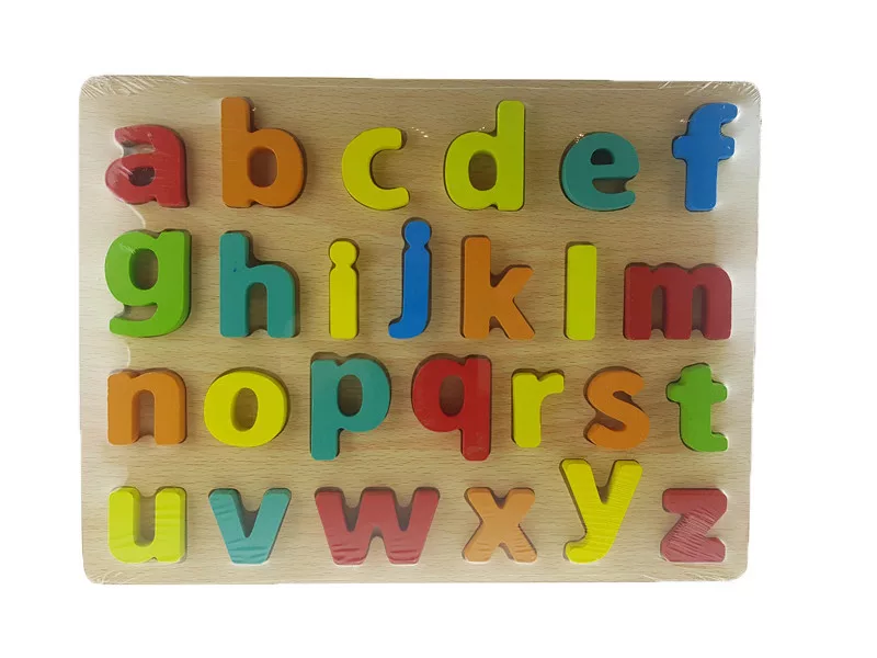 A nagyméretű fakeretben az ABC betűit formázó kirakó darabokat találsz. Csak ki kell szedni a betűket a keretből és a gyermek máris megkeresheti melyik betű hova való.