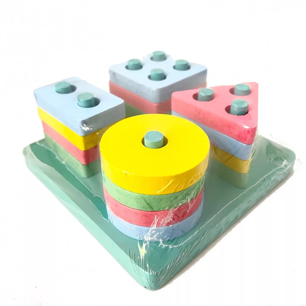 A fejlesztőjátéka a legegyszerűbb formákkal ismerteti meg a gyermeket. Felfedezheti, hogy egyre több pálcikára kell felfűzni a geometriai formákat, illetve mindezt két rétegben (szintben) is el lehet végezni.