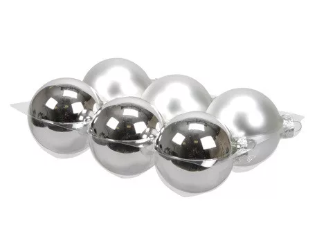 Gömb Üveg 8Cm Ezüst Fényes-Matt S/6