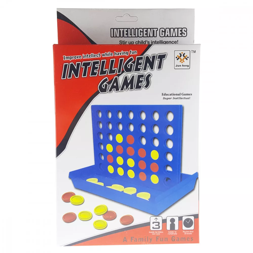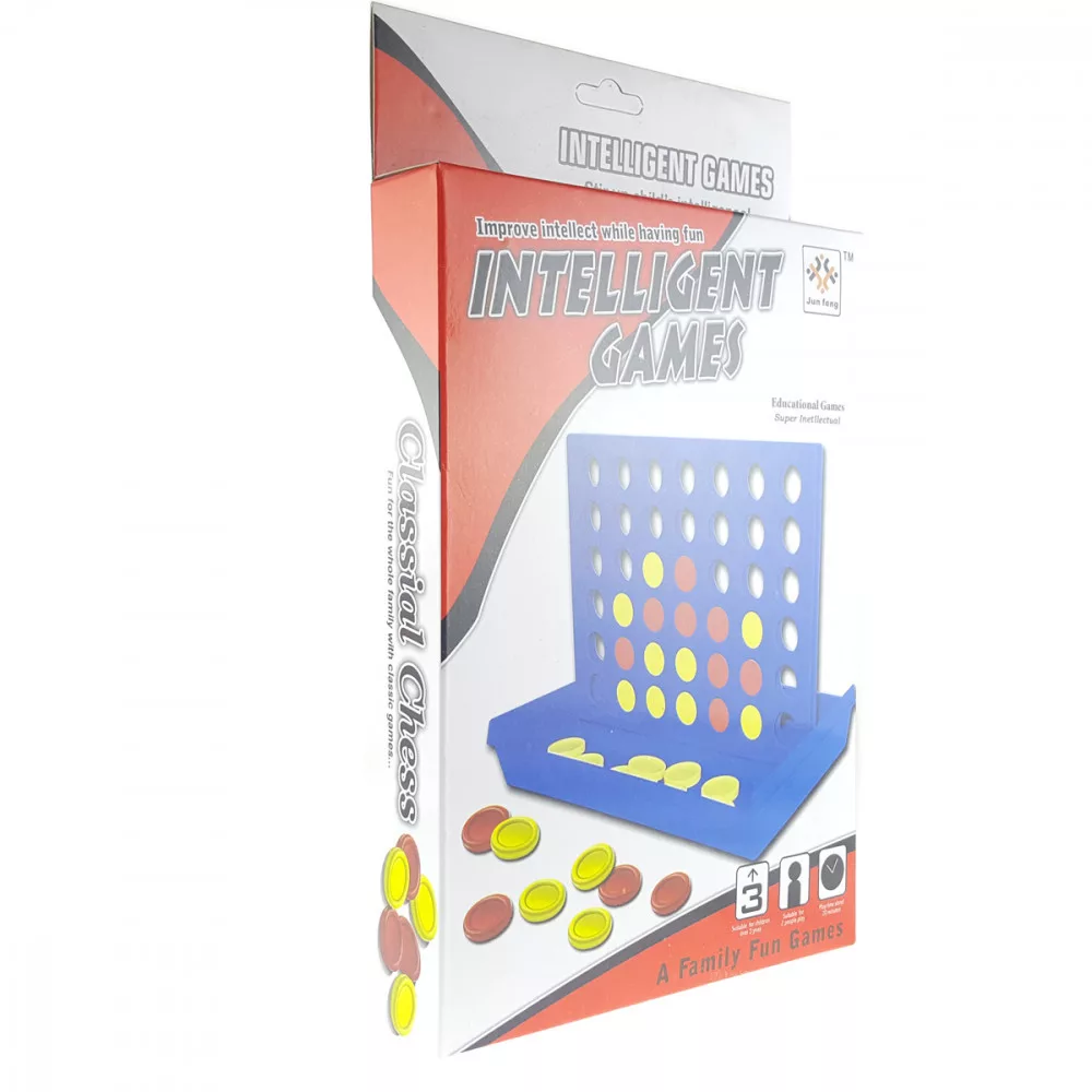 4 egyforma korongot függőleges, viszintes, átlós irányban megszakítás nélkül sikerüljön lerakni. Az ellenfél a kialakulni látszó vonal végére tett bábukkal próbálja megakadályozni.