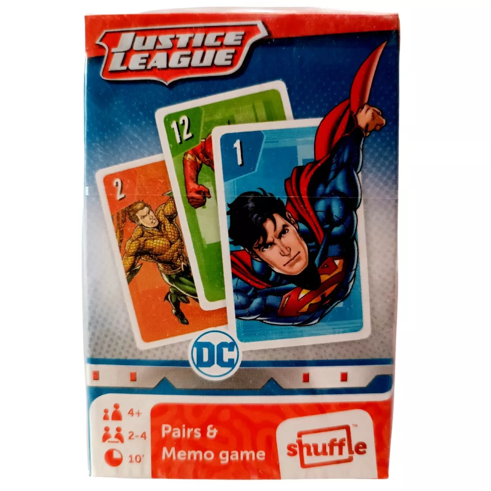 Az Igazság ligája kártyajáték, mellyel Fekete Pétert vagy memória játékot is játszhatsz. A lapokon Wonder Woman, Aquaman, Superman, Batman és a többiek képei szerepelnek.