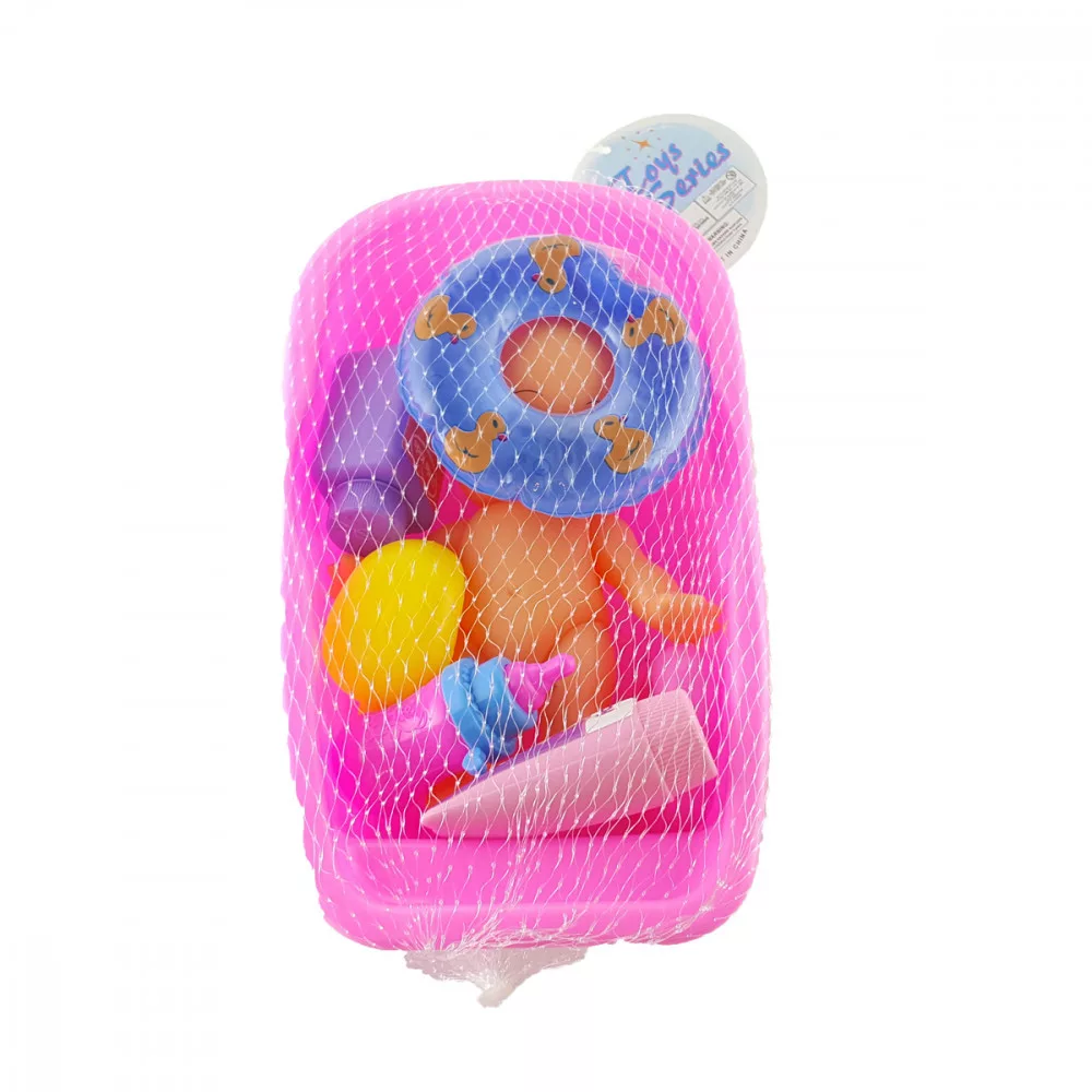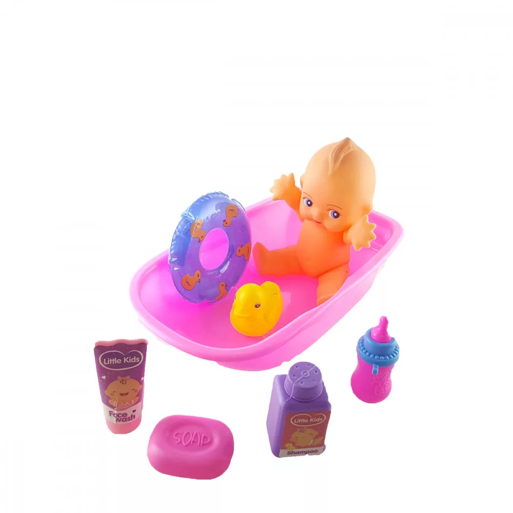 Kezdő készlet lehet a  a kádas baba a kislányok számára. A játék tartalma: kád, baba, kiegészítők. A játék anyaga: műanyag, méret kb.: 20 cm