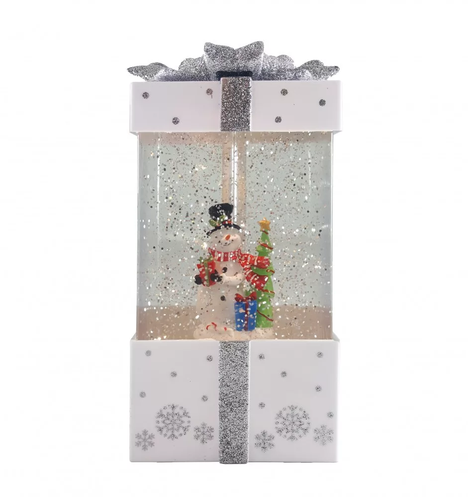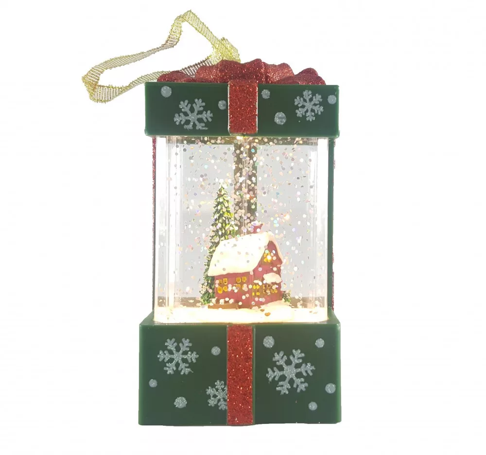 Karácsonyi Lámpás ajándékdoboz, csillámokkal hóemberrel vagy házikóval.