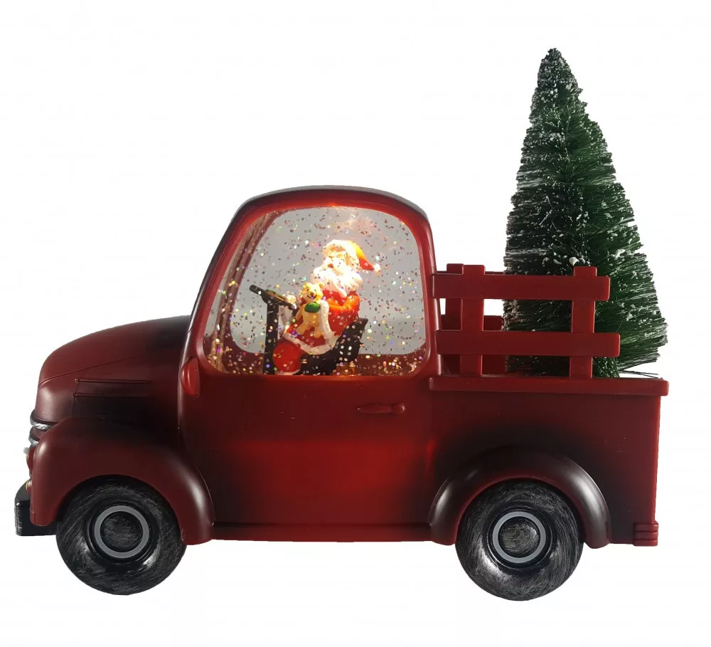 Lámpás Autó Fenyőfával Télapóval Piros