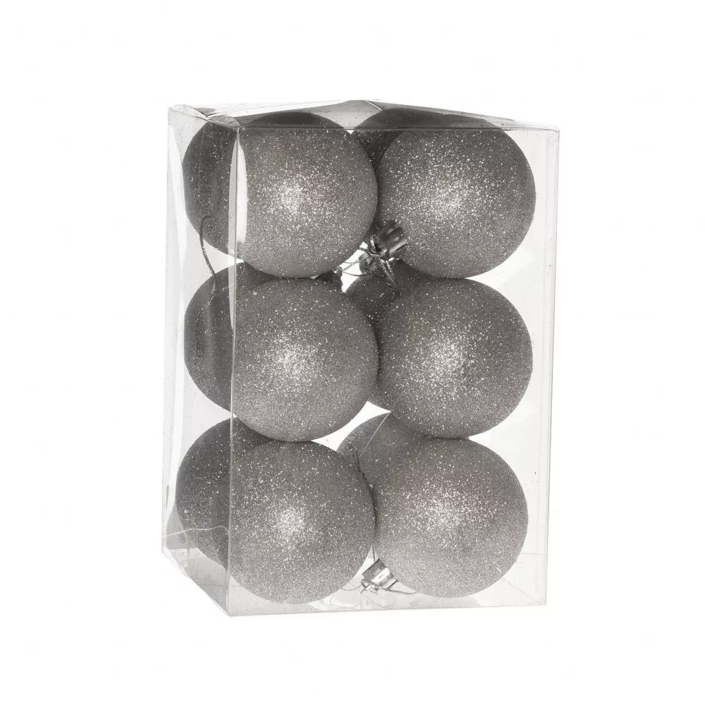 Műanyag gömb dobozban 6 cm Ezüst glitteres