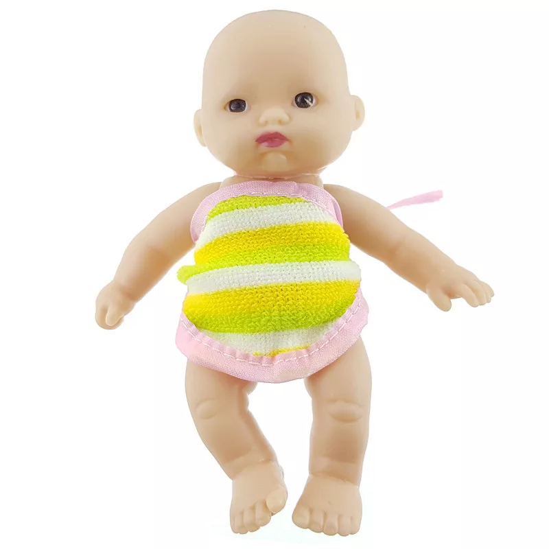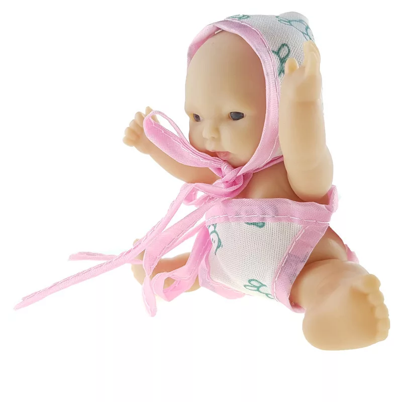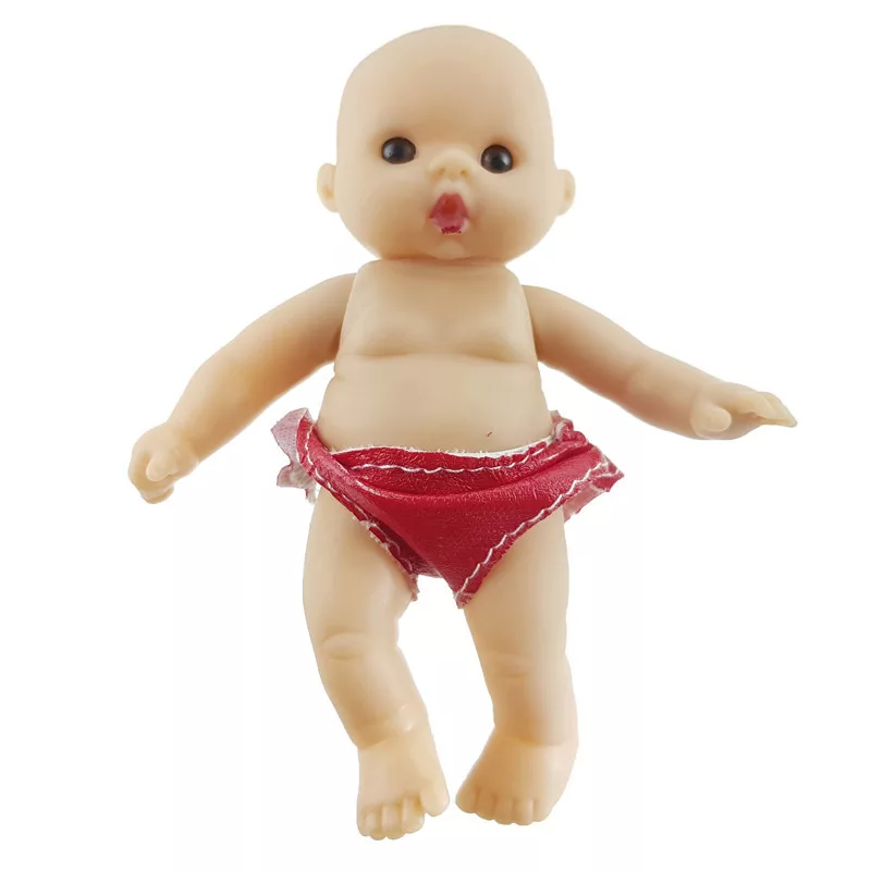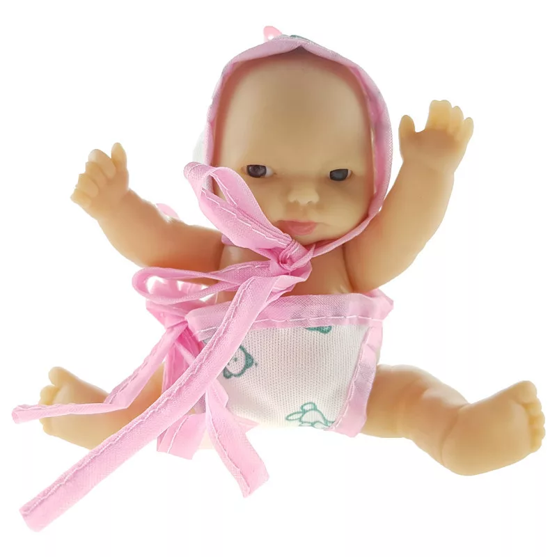 Mini és aranyos játékbaba, mozgatható végtagokkal. A  legtöbb babaházban ott a helye! A baba karjait és lábait mozgatni tudod, a kis ruhája levehető.