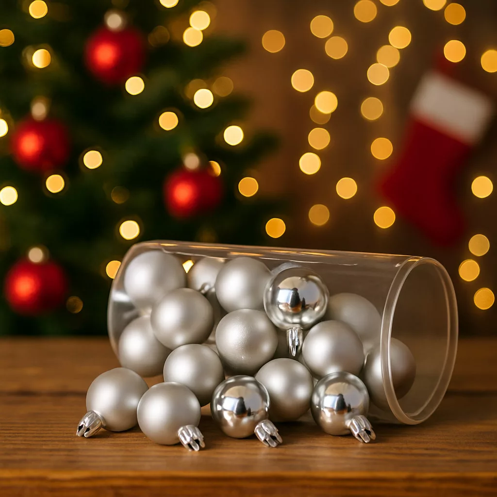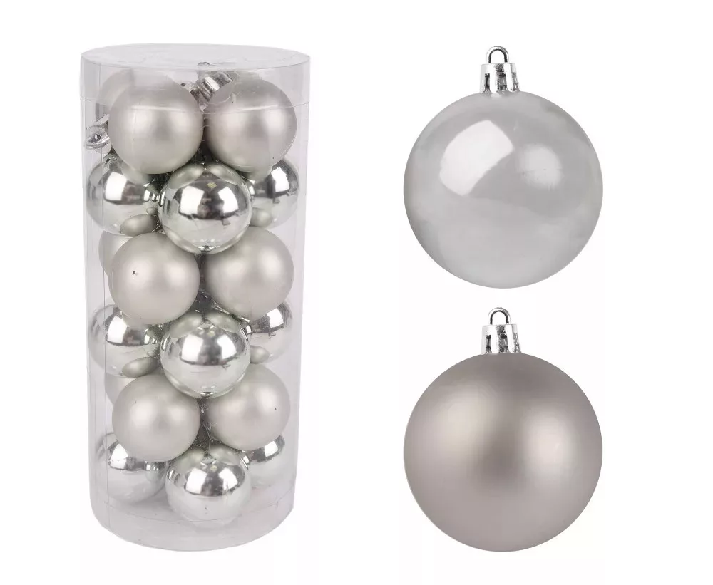 Karácsonyi gömb ezüst színben, 2cm, 24db/csomag