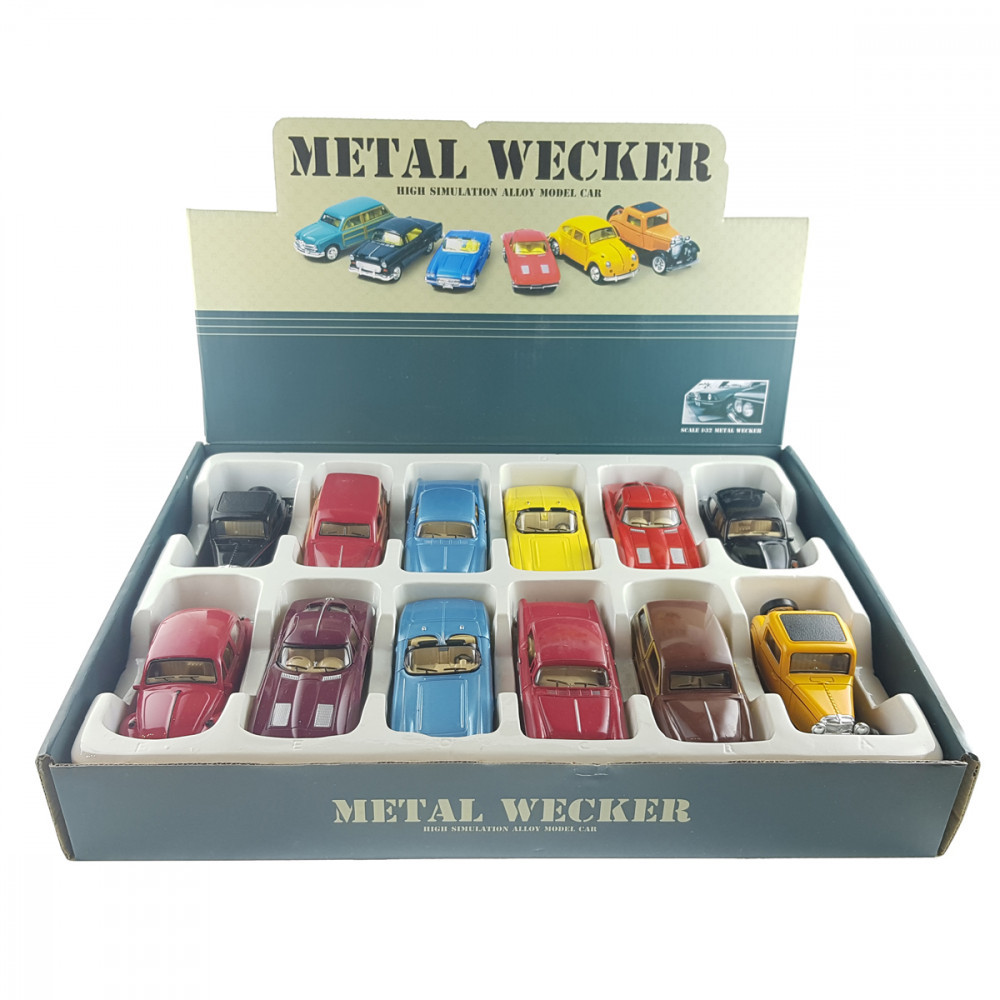 Különböző típusú old timer autók. Élethű kialakítás és színek. Az autók nyitható  ajtóval és hátrahúzó mechanikával rendelkeznek.
